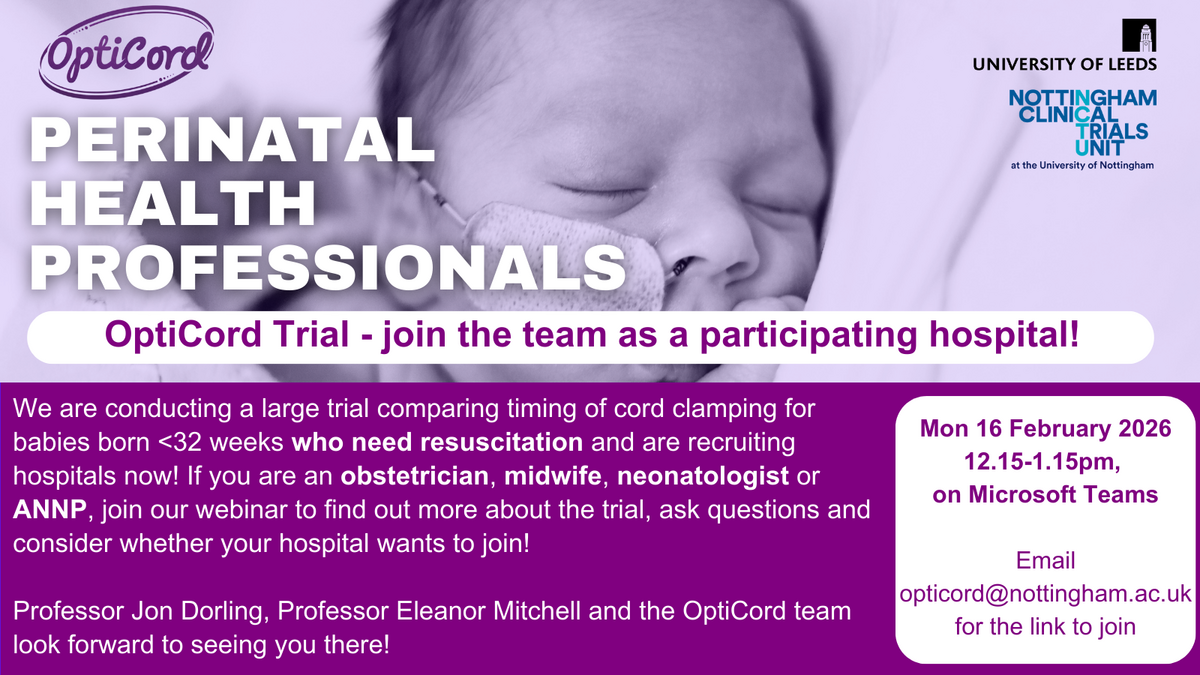 They are now setting the trial up and want to invite neonatologists (and other perinatal HCPs) to an online lunchtime webinar to find out more about the trial and to give them the opportunity to ask questions.